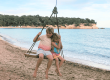 This sheltered bay offers an ideal setting for families with young children. The crescent-shaped beach features soft sand and shallow, crystal-clear waters that gradually deepen, making it easy for little ones to paddle and play. The beach is very big so even in high season you will be able to find a spot. The sand is soft and perfect for building sandcastles and let your kids make sand monsters of you! Nearly every conceivable amenity is present, a life guard, easy access by stroller thanks to the disabled ramp, lots of family friendly restaurants serving a large variety of foods such as sushi, healthy salads, Mediterranean cuisine, Spanish tapas. In high season in the evening there’s even a little hippie market.