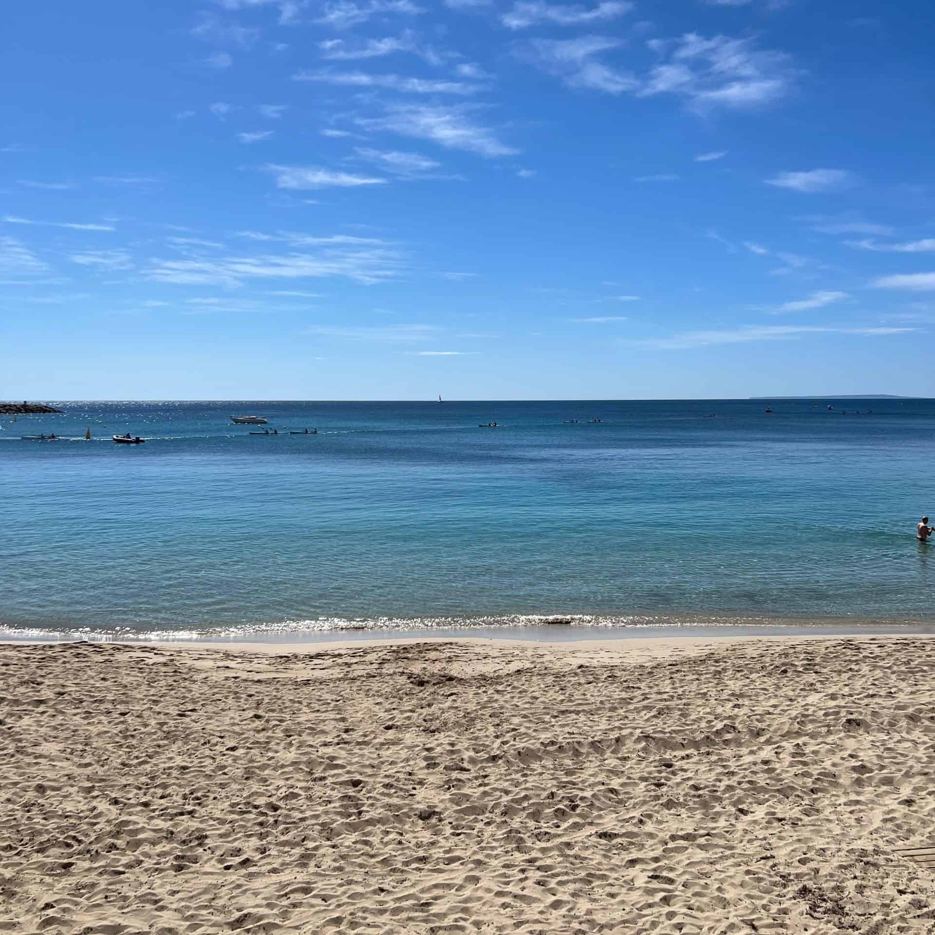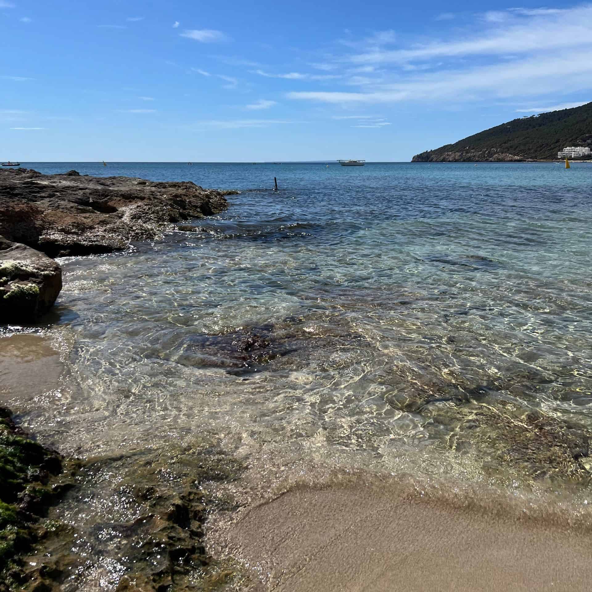 Santa Eulalia has an amazing family friendly beach right in the heart of town. This long sandy beach runs from the town center all the way to Siesta, with a lovely palm-lined promenade that’s perfect for walks and where kids can happily zoom around on their scooters or bikes.